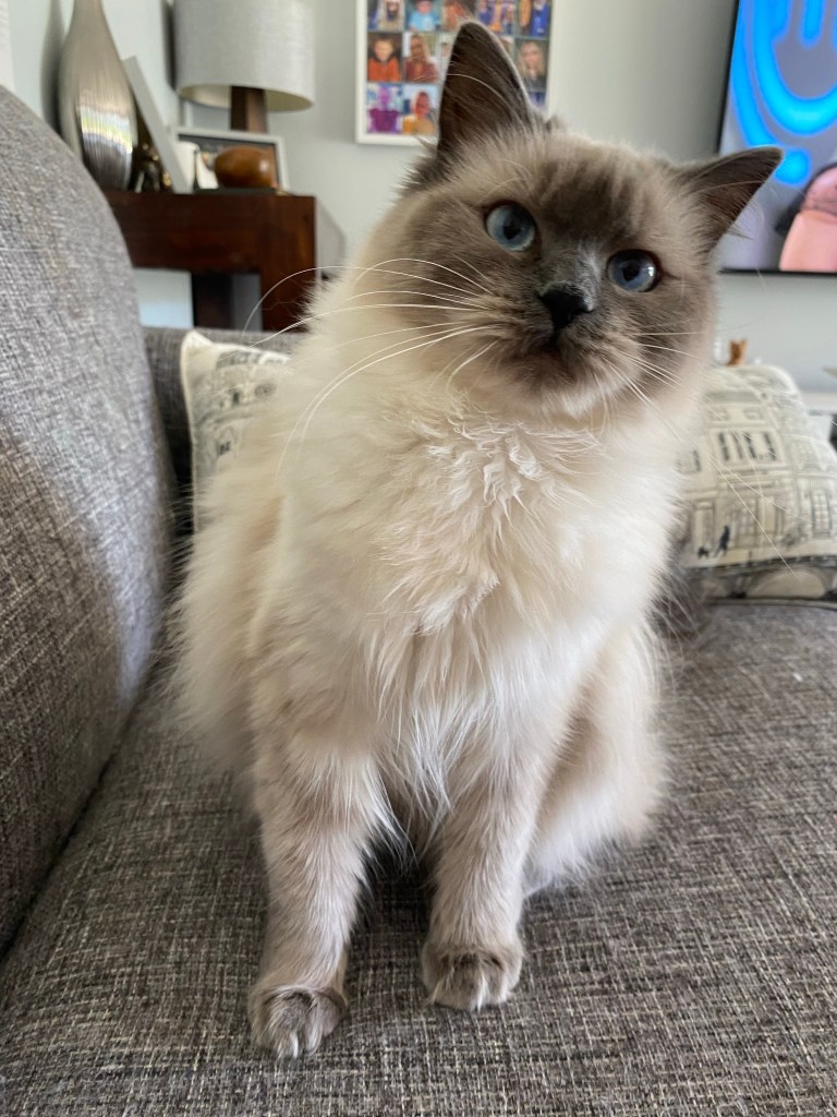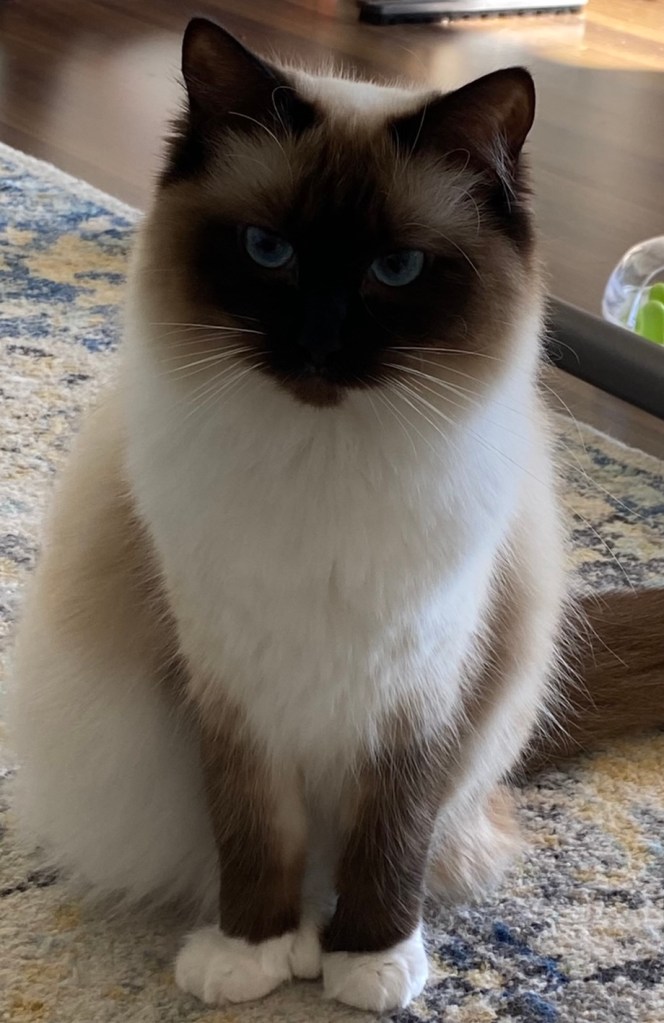 This is Stella. She is such a friendly and loving girl! She is just so happy to be a Mum and has very happy and healthy kittens. Stella is a Seal Mitted.